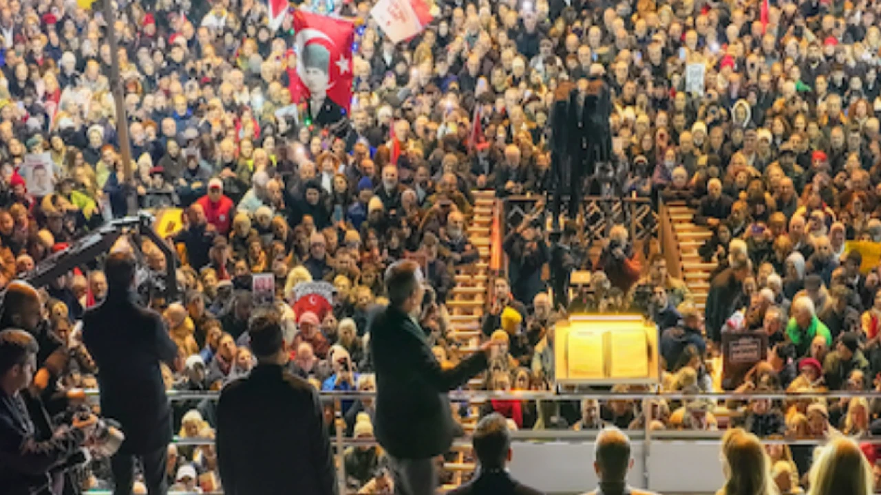 Miting alanında önce 344 gündür tutuklu bulunan CHP’nin cumhurbaşkanı adayı ve İBB Başkanı Ekrem İmamoğlu’nun, ardından 305 gündür tutuklu olan Bakırköy Belediye Başkan Yardımcısı Ali Rıza Akyüz’ün mektupları okundu. Meydanı dolduran kalabalık, her iki mektubu da alkışlarla karşıladı.