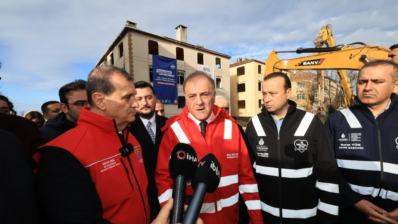 Yıkım alanına, Cumhuriyet Halk Partisi (CHP) Genel Başkanı Özgür Özel ile birlikte gerçekleştirdikleri 5 günlük deprem bölgesi ziyaretlerinin ardından geldiğini belirten BB Başkanvekili Aslan, canlı yayında gerçekleştirilen yıkım öncesinde basın mensuplarına açıklamalarda bulundu. “Deprem tüm Türkiye'nin gerçeği,” diyen Aslan, “2019 yılında Ekrem Başkanımız göreve geldiğinde, afetle mücadele edebilmek için çok ciddi çalışmalar, toplantılar yaptı. İBB olarak, depreme yönelik hazırlık çalışmalarımızda ‘altyapı, üstyapı ve ulaşım, lojistik, deprem anı ve sonrası’ olmak üzere 4 ana başlıkta, 14 alt başlıkta mücadele ediyoruz. Bu kapsamda 21 daire başkanlığı ve bağlı kuruluşlarımız ve 14 iştirak şirketimizin dahil olduğu 57,8 milyar TL'lik 291 projemizi tamamlamış durumdayız. Bu 57,8 milyar ya da 291 projeyi tamamlamak, bizim işimizin bittiği anlamına geliyor mu? Hayır. Biz, daha yolun başındayız ve büyük bir mücadele gösteriyoruz. Genel Sekreterimiz ve genel sekreter yardımcılarımızla beraber toplantılar yaptık ve bütçemizin büyük bir kısmını kentin ulaşımına, altyapısına ve kentsel dönüşüme, afete hazırlık olarak belirledik,” bilgilerini aktardı.