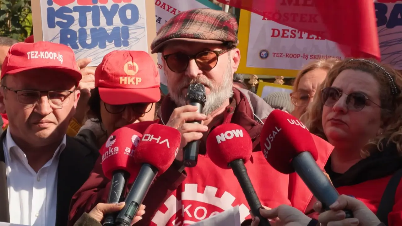 Türk iş İstanbul 1.Bölge Temsilcisi Halil Faki Erdal, "Milli Eğitim Bakanlığı'nın bir önce yaptığı yanlıştan dönmesini bizler Türk-İş sınıfı olarak buradan talep ediyoruz. Eğer bu taleplerimiz yerine gelmezse Tez-Koop-İş olarak da Türk-İş olarak da grevin gittiği yere kadar, kazanana kadar direnerek kazanacağız" dedi.