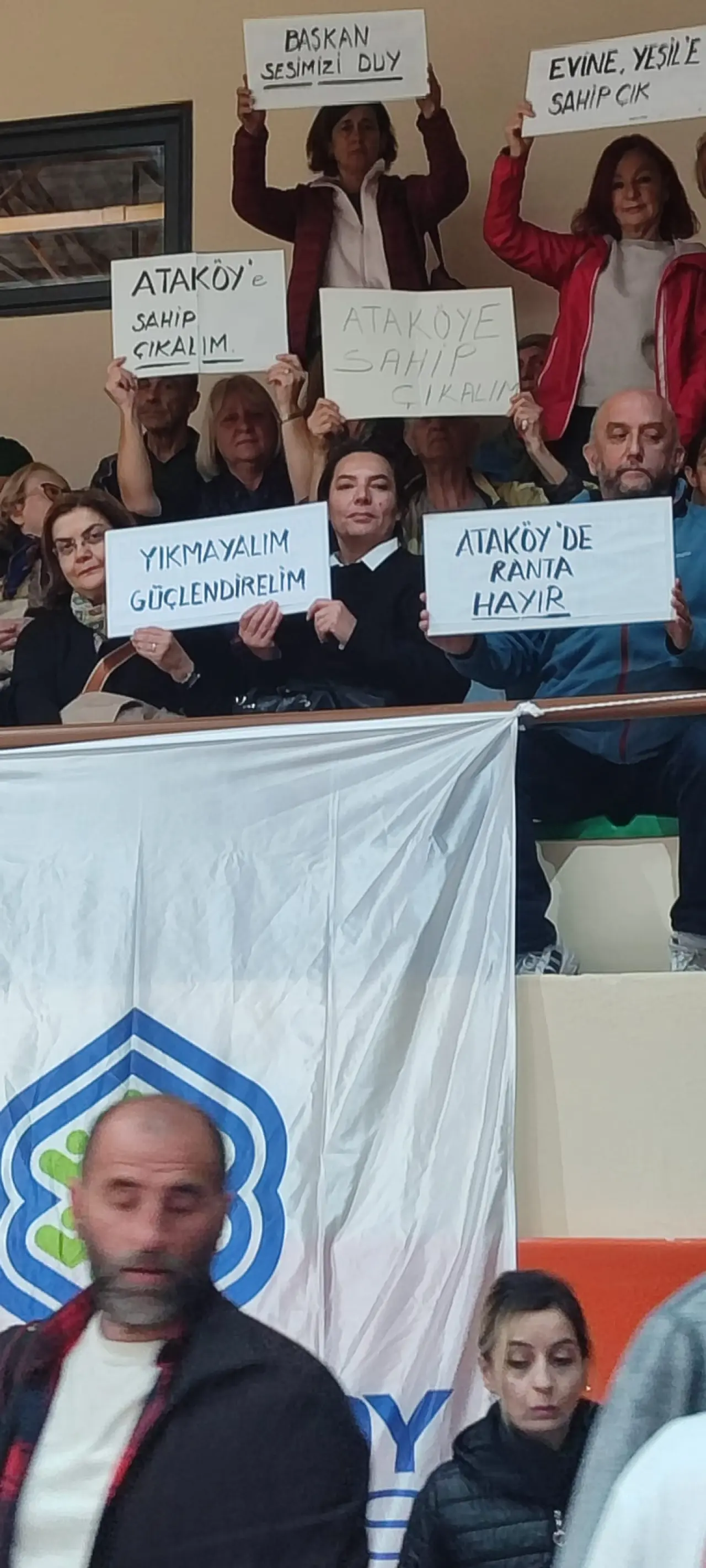 Belediye Başkanı Ayşegül Ovalıoğlu’nun katıldığı Bakırköy Spor Vakfı Spor Kompleksi açılışına “Ataköy’e sahip çıkalım”, “Yıkmayalım, güçlendirelim”, “Başkan sesimizi duy” yazılı dövizlerle katılan mahalle sakinleri, belediyenin kendilerine destek vermesini istedi. Vatandaşlar, yıllardır Bakanlık, yerel yönetimler ve halk iş birliğiyle yürütülmesi gereken yenileme çalışmalarının, sorun kapıya dayandığında aceleyle ve dayatmayla gündeme getirildiğini belirterek, çözüm üretmeyen belediyenin halk arasında kriz yarattığını savundu.