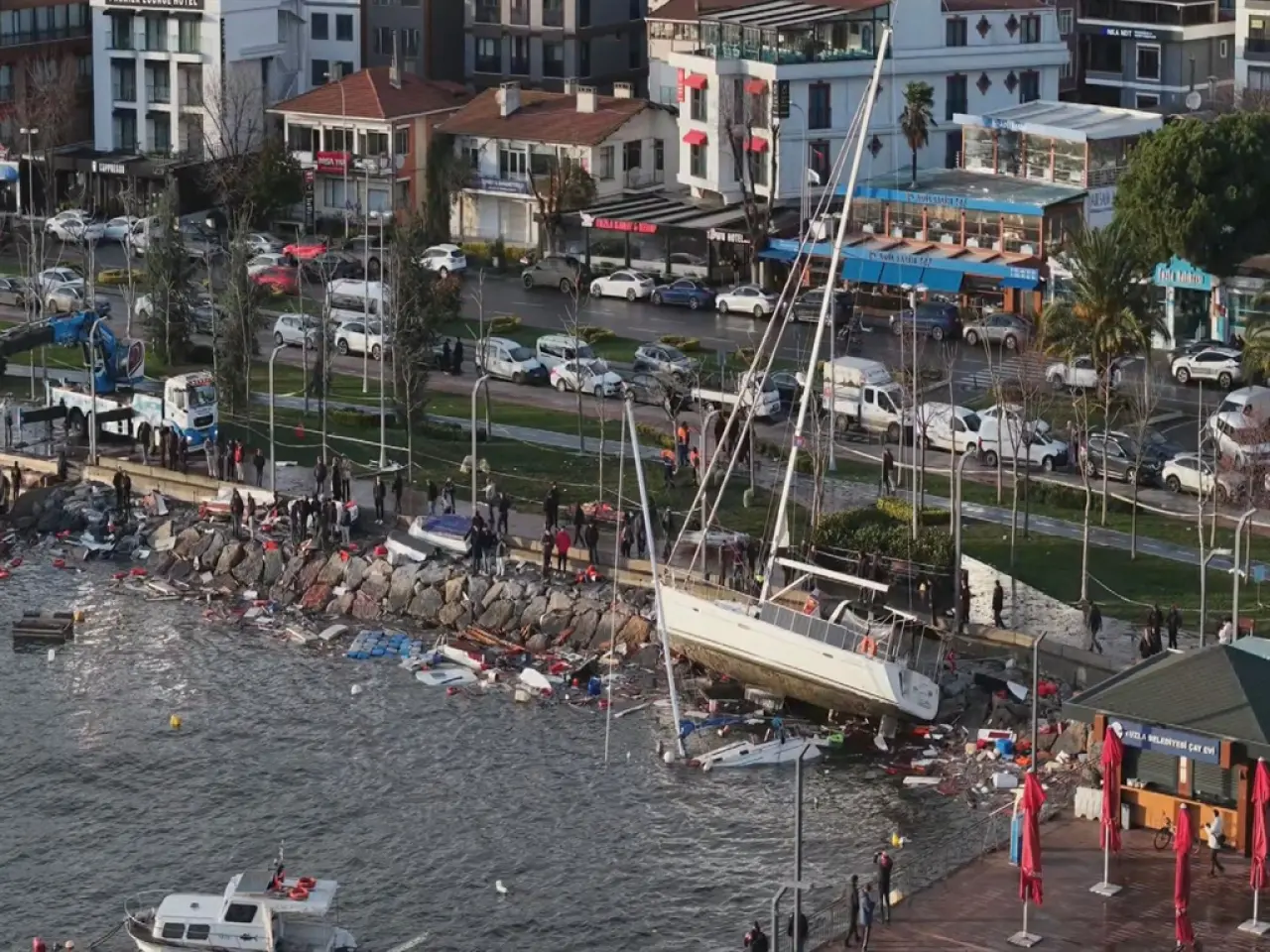 İstanbul Valiliği tarafından şiddetli rüzgar ve fırtınaya ilişkin yapılan açıklamada, "teoroloji Genel Müdürlüğü verilerine göre İstanbul'da 08.01.2026 Perşembe günü sabah saatlerinden itibaren şiddetli rüzgâr- fırtınanın etkili olacağı öngörülmüş ve gerekli uyarılar Valiliğimizce yapılmıştır. Beklenen şiddetli rüzgâr- fırtına, sabah saat 05.00 itibariyle bölgemizde etkili olmaya başlamış olup fırtınanın, bugün saat 22.00'a kadar etkisini sürdürmesi beklenmektedir. İstanbullu hemşerilerimizden, olası çatı uçmalarına, karbonmonoksit - doğalgaz zehirlenmelerine ve su baskınlarına karşı tedbirli olmalarını önemle rica ediyoruz İstanbul'da şiddetli rüzgâr ve fırtınanın etkili olmaya başladığı sabah saatlerinden 18.00'a kadar; 45 ağaç devrilmesi, 89 çatı uçması, 214 tehlike arz eden parça ihbarı, 1 Metruk bina çökmesi, 1 İstinat duvarı çökmesi olmak üzere toplam 350 ihbar gelmiştir. Alınan ihbarlara AFAD, itfaiye, 112 acil sağlık ekipleri müdahale etmiş olup, fırtınaya bağlı olarak meydana gelen olaylarda bir vatandaşımız hafif yaralanmıştır. Öte yandan fırtına nedeniyle; Kıyı Emniyeti Genel Müdürlüğü tarafından İstanbul Boğazı çift yönlü gemi trafiğine kapatılmış, saat 17.00 itibariyle ise gemi trafiğine yeniden açılmıştır. İstanbul Deniz Otobüsleri (İDO) ve Bursa Deniz Otobüsleri'nin (BUDO) tüm seferleri ile Şehir Hatları işletmesine bağlı tüm seferler iptal edilmiştir. İstanbul Havalimanı'nda 32'si iç hat, 32'si ise dışa hat olmak üzere toplam 64 sefer; Sabiha Gökçen Havalimanı'nda ise 31 iç hat, 2 dış hat olmak üzere toplam 33 sefer iptal edilmiştir. Fırtına nedeniyle Tuzla'da 37, Pendik'te 7 ve Kartal'da 1 olmak üzere toplam 45 tekne zarar görmüştür" ifadeleri kullanıldı. (DHA)