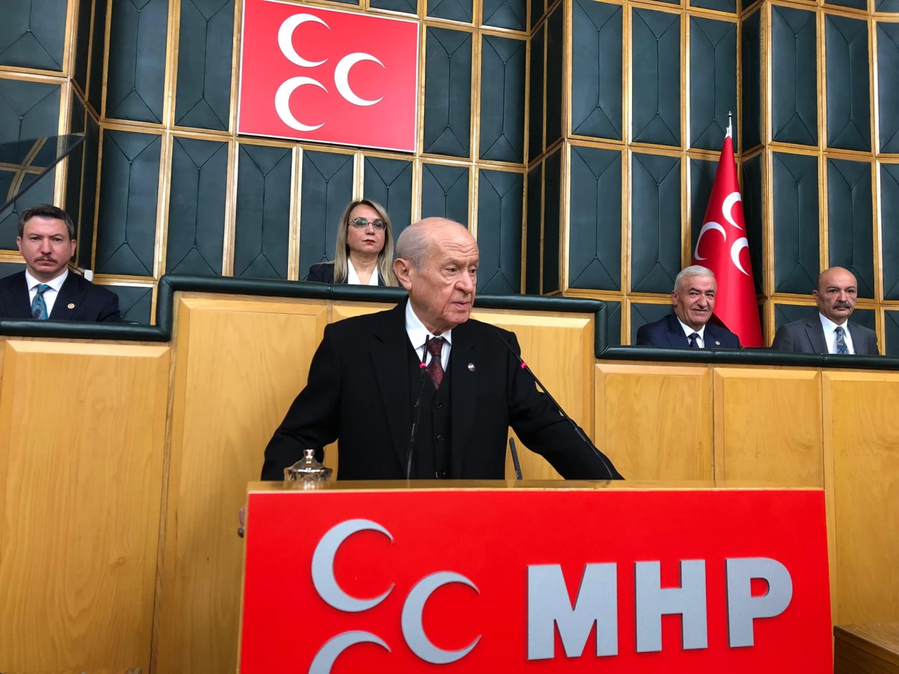 MHP Genel Başkanı Bahçeli, TBMM'de partisinin grup toplantısında konuştu. Bahçeli, Milliyetçi Hareket Partisi olarak birer haftalık arayla önce İl Başkanları Toplantısı, müteakiben de Merkez Yönetim Kurulu-Merkez Disiplin Kurulu Ortak Toplantılarını gerçekleştirdiklerini belirterek, “Bundan sonra takip ve temin edeceğimiz siyasi yol haritası üzerine muhtevalı değerlendirmeler yaparak fikir ve görüş birliği sağladık. Ülkemizi her yönden etkileyen iç ve dış gelişmeleri, dünyayı kasıp kavuran siyasi ve stratejik mücadeleleri, çoğalan risk ve tehditleri kapsamlı olarak ele aldık. Bilhassa ‘Terörsüz Türkiye’ ile ‘Terörsüz Bölge’ hedefleri çerçevesinde bir yandan atılan kararlı adımları diğer yandan da bozucu tesirleri ve bozguncu telkinleri dikkatle yorumladık. Yıkımı ve yıkıcılığı tercih eden Siyonist-emperyalizmin yoz ve yeminli işbirlikçilerini, bunların şiddet ve şekavetle yazılmış husumet senaryolarını gözden geçirip temkinli ve tedbirli siyasi duruşumuzu teyit ettik. Memnuniyetle ifade etmeliyim ki Milliyetçi Hareket Partisi huzurlu, güvenli, milli birlik ve bütünlüğü çelikleşmiş, barış ve refahla çatısı örülmüş bir Türkiye’yi Cumhur İttifakı’nın ortak akıl ve ahlaki yapısıyla hayata geçirmenin sonsuz amaç ve azmindedir. Bu soylu amaç ve azim ucuz hesaplara, basit oyunlara kurban verilmeyecek kadar hayatidir, hakikatlidir, haysiyetlidir” ifadelerini kullandı.