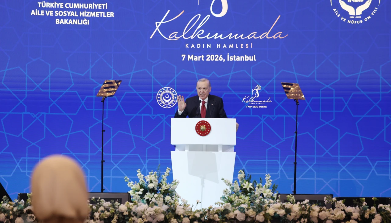 Erdoğan, "Dünya Kadınlar Günü'nü küresel ölçekte kadın sorunlarının ağırlaştığı, özellikle yakın çevremizde kadınların çok zor günler yaşadığı bir dönemde karşılıyoruz. Elini vicdanına koyan herkes, inanıyorum ki tabloyu çok net görebiliyor. Bugün maalesef başta bölgemiz olmak üzere dünyanın farklı yerlerinde çatışma var. Bunun acısını en çok kadınlar çekiyor. Bugün dünya büyük bir gelir dağılımı adaletsizliği ile karşı karşıya; bundan en çok kadınlar mağdur oluyor. Bugün dünyada batıl inançlardan, asabiyetten, yanlış örf ve adetlerden kaynaklanan ayrımcılık var; bu durum en çok kadınları olumsuz etkiliyor. Bütün bu zulümlere en güçlü tepkiyi veren; nerede olursa olsun ayrımcılığa, hukuksuzluğa itiraz eden ülkelerin başında geliyoruz. İşte komşumuz İran'da olduğu gibi, nerede bir yangın varsa oraya su taşımaya; nerede bir yara kanıyorsa ona merhem olmaya çalışıyoruz. Ülkemizin insani değerleri merkeze alan haysiyetli duruşunun en büyük bekçisi hanım kardeşlerimizdir. Umutlarımızı kıran her türlü olumsuzluğa rağmen, daha adil bir dünyanın mümkün olduğu inancıyla ülkemizin kutlu mücadelesine verdiğiniz destek için bir kez daha hepinize teşekkür ediyorum. Burada şunu gururla ve şükranla ifade etmek isterim. Devletimiz, merhum Kemal Tahir'in dediği gibi 'Devlet Ana' ise bu, sizin kuşatıcı ana şefkatiniz ve hamiyetiniz sayesindedir. Peşpeşe savaşlardan ve en son istiklal harbinden sonra yorgun düşen ülkemizi ayağa kaldırmışsak, Cumhuriyetimizi her gün güçlendirerek 103 yaşına getirdiysek bunda kadınlar olarak fedakarlıklarınızın, emeklerinizin yadsınamaz payı vardır." şeklinde konuştu.