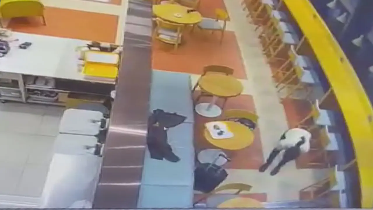 Öte yandan yolcunun boğulma tehlikesi geçirdiği ve garsonun kadına müdahale ettiği anlar güvenlik kamerasına yansıdı.