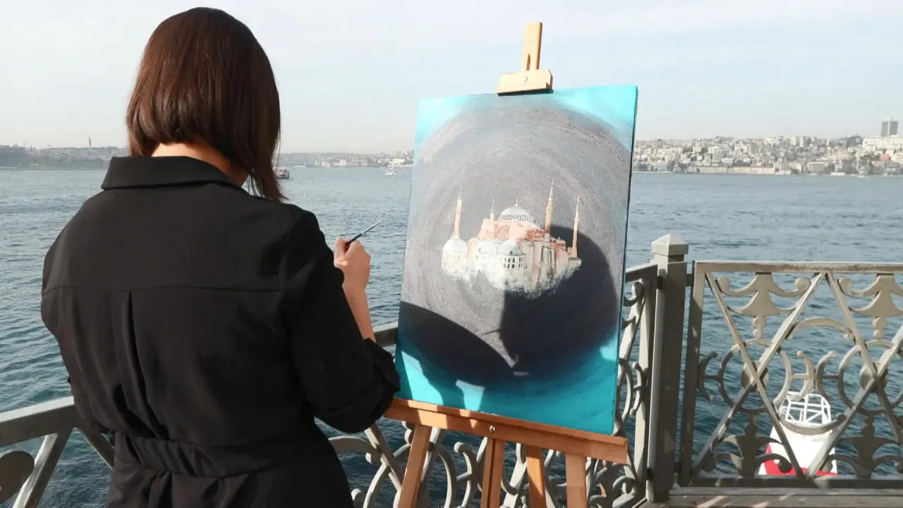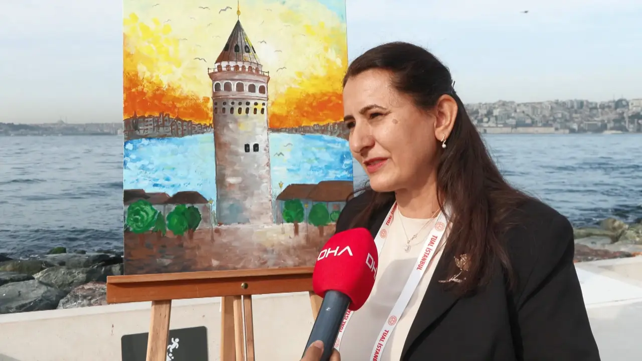Resim Öğretmeni Asya Yıldırım, "Bugün 'İstanbul'u Resmediyorum' konulu bir projemiz var. Ve bu kapsamda da ben Galata Kulesi'ni resmetmek istedim. Fakat yani çok uzun zamandır, yani yüzyıllar boyunca Galata Kulesi de biliyorsunuz çok resmedilen bir tarihi yapı. Ben Galata Kulesi'ni günümüzdeki haliyle aslında birazcık daha yansıtmak istedim. Hem eski yapılarımızın, hem tarihi yapılarımızın, hem de modern mimarinin karmaşası, birazcık da günümüz İstanbul ruhunu yaşatan bir Galata olsun istedim. Oldukça canlı renkler kullanmak istedim. Bu da İstanbul'un aynı zamanda renkli yüzünü de bize gösteriyor. Bu yüzden tercih ettim diyebiliriz" dedi. Resim öğretmeni olan Gizem Aydın ise "Bugün aslında İstanbul'da yaşayan şanslı olan öğretmenlerden biriyim ve bu muhteşem manzaranın önünde İstanbul'u resmetmek, o renkleriyle buluşturmak çok daha heyecan verici bir şeydi ve ben aslında bulunduğum manzaradan etkilenerek tarihi yarımada manzarasını tercih ettim. Çünkü bütün hikaye orada başlamıştı" ifadelerini kullandı. DHA