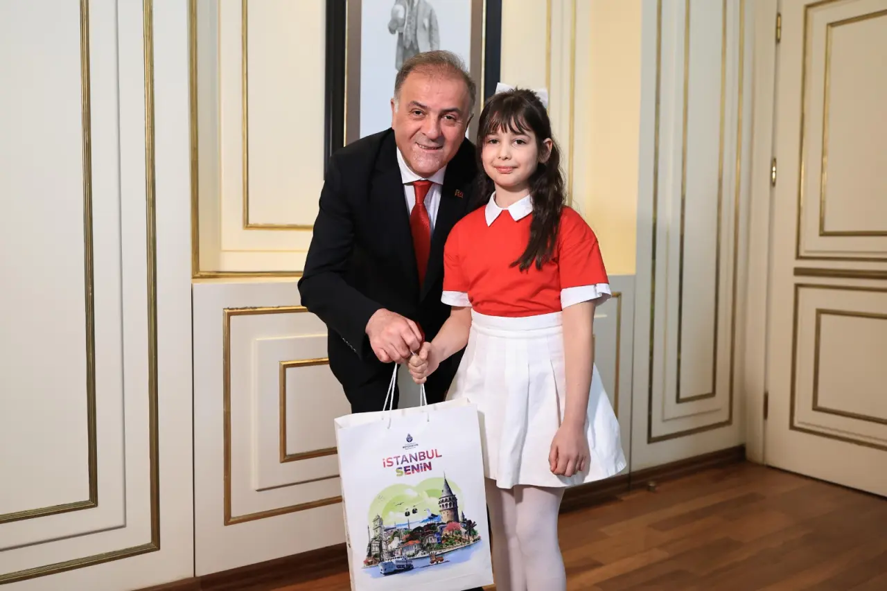 İstanbul Büyükşehir Belediye (İBB) Başkanvekili Nuri Aslan, 23 Nisan Ulusal Egemenlik ve Çocuk Bayramı dolayısıyla Beyoğlu Taksim’deki Cumhuriyet Anıtı’na çelenk bıraktı. Ardından İBB Saraçhane Hizmet Binası’ndaki Başkanlık makamına geçen Aslan, burada bir grup çocuğu ağırladı. Sultangazi’deki Cumhuriyet İlkokulu öğrencisi 5 çocuk ile okul müdürünü ve sınıf öğretmenini makam odasında kabul eden Aslan, koltuğu 4’üncü sınıf öğrencilerinden Zeynep Mira Örs’e devretti. Aslan’ın sözü bıraktığı Örs, “Gazi Mustafa Kemal Atatürk'ün biz çocuklara armağan ettiği bu eşsiz bayramda, dünyanın en güzel şehri İstanbul'un Belediye Başkanlığı koltuğunda oturuyor olmaktan büyük bir gurur ve mutluluk duyuyorum. Her çocuğun mutlu kartı olsun. Haftada bir gün bütün tiyatrolar, müzeler, eğlence merkezleri ve toplu taşımalar çocuklar için haftada bir gün ücretsiz olsun. Bugünlük görevini bana devreden Sayın Başkanımıza da tüm çocuklar adına teşekkür ederim” diye konuştu.