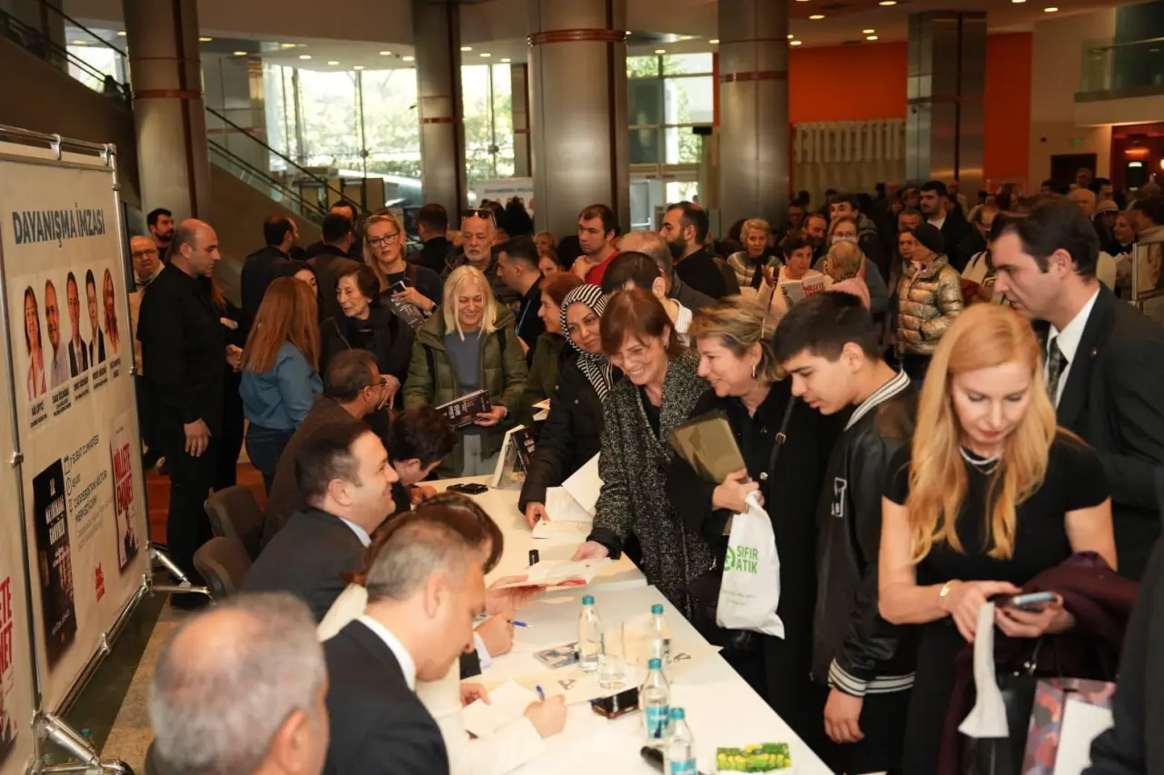 Yavuz Oğhan’ın kaleme aldığı, önsözünü CHP Genel Başkanı Özgür Özel’in, sonsözünü ise İstanbul Büyükşehir Belediye Başkanı Ekrem İmamoğlu’nun yazdığı Millete Emanet ile 23 Mart’tan bu yana Marmara Cezaevi’nde tutuklu bulunan İstanbul Planlama Ajansı (İPA) Başkanı Buğra Gökçe’nin kaleme aldığı 22 Metrekare Gökyüzü için düzenlenen imza günü, 7 Şubat Cumartesi günü Kadıköy Belediyesi Caddebostan Kültür Merkezi’nde (CKM) yapıldı. Etkinliğe; Cumhuriyet Halk Partisi (CHP) Genel Başkan Yardımcısı Gül Çiftçi, Cumhurbaşkanlığı Aday Ofisi Milli Eğitim Politika Kurulu Başkanı Suat Özçağdaş, CHP Ankara Milletvekili Umut Akdoğan, CHP Parti Meclisi Üyesi Tolga Sağ, Kadıköy Belediye Başkanı Mesut Kösedağı, Maltepe Belediye Başkanı Esin Köymen, Adalar Belediye Başkanı Ali Ercan Akpolat ve Buğra Gökçe’nin eşi Filiz Kahveci Gökçe katıldı. Kitapların imzalandığı CKM’nin giriş katında uzun kuyruklar oluştu.