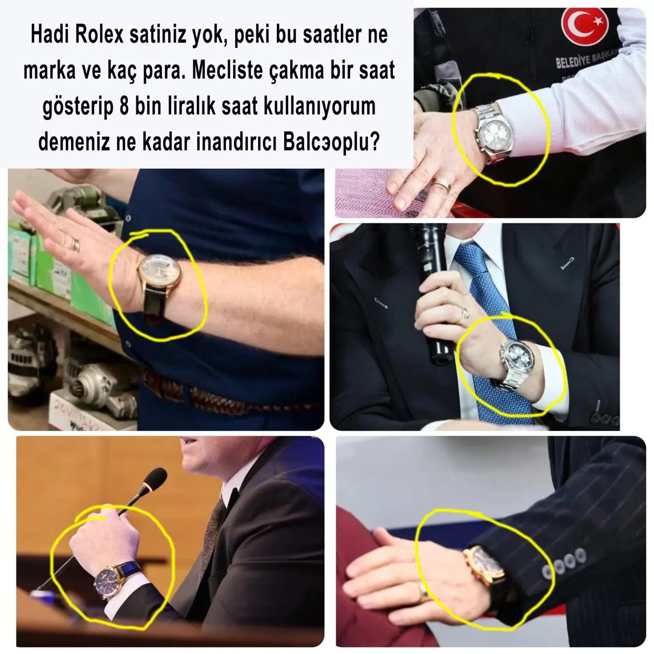 Bora Balcıoğlu'nun kolundaki saate ilişkin de açıklama yapan Mert, “Bir insan kolunda taktığı saati ne kadara aldığını bilmez mi? Ben saatlerimin ne kadar olduğunu biliyorum çünkü hepsinin faturası duruyor. Kendisi mecliste “Arkadaşlar bakmışlar, saat sekiz bin lira” demiş. Yapma ya! Diğer saatler nerede? Seçimden sonra kolunda taktığın en az beş saati gösteririm. Buraya da fotoğraflarını koyuyorum” diye konuştu.