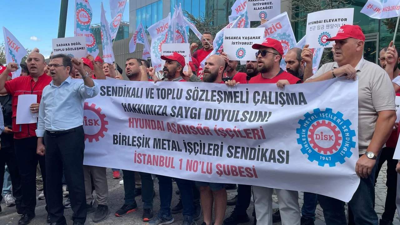Birleşik Metal-İş Sendikası ile Hyundai Asansör yönetimi arasında yürütülen toplu sözleşme görüşmeleri tıkanınca işçiler eylem kararı aldı. Şirketin İstanbul’daki genel merkezi önünde toplanan işçiler, üç yıllık mücadelenin ardından kazandıkları TİS hakkının uygulanmasını ve insanca yaşanacak bir ücret talep ettiklerini belirtti. Hyundai Asansör işçileri, 2022 yılında Birleşik Metal-İş’te örgütlendi. Çalışma Bakanlığı sendikanın yetkisini onayladı ancak işverenin itirazı sonrası süreç yargıya taşındı. Yargı süreci toplamda üç yıl sürdü ve sonunda sendikanın yetkisi kesinleşti. Ancak müzakere sürecinde işveren, ücret artışı içermeyen bir teklifte bulundu.