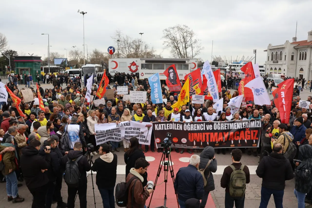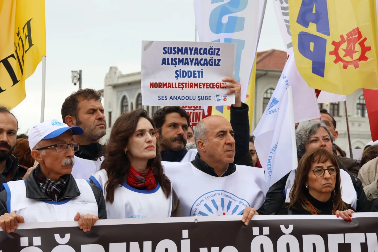 KESK İstanbul Şubeler Platformu, DİSK İstanbul Bölge Temsilciliği, TMMOB İstanbul İl Koordinasyon Kurulu ile İstanbul Tabip Odası, Kahramanmaraş’taki Aysel Çalık Ortaokulu’nda gerçekleşen silahlı saldırı sonucunda hayatını kaybeden öğretmen ve öğrenciler için Kadıköy İskelesi Meydanı’nda anma programı düzenledi. “katledilen öğretmen ve öğrencilerimizi anıyoruz” pankartı etrafında bir araya gelenler, “Susma haykır şiddete hayır”, “ Yusuf Tekin istifa” sloganları attı. Şiddete karşı tepkilerin dile getirildiği anmada, kurumlar adına temsilciler açıklama yaptı.