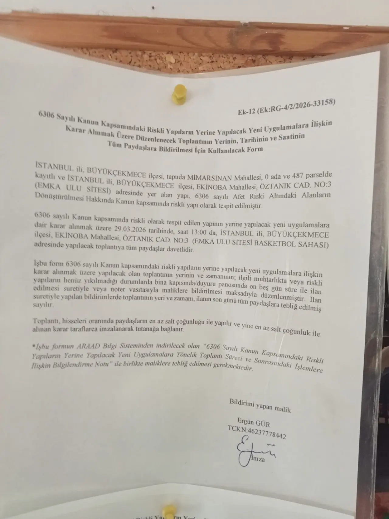 Firma tarafından noter üzerinden imza toplandığı, ancak yüzde 50+1 çoğunluğun sağlanamadığı yönünde ciddi bulgular bulunduğu ifade edildi. Buna rağmen firmanın sınırlı sayıda belge paylaşarak çoğunluğun sağlandığını ileri sürdüğü ve imza vermeyen maliklere noter masrafları üzerinden baskı kurduğu iddia edildi. Site sakinleri, aynı noterlikten alınan karşı beyanların firmaya iletilmesine rağmen uygulamaların devam ettiğini belirtiyor.