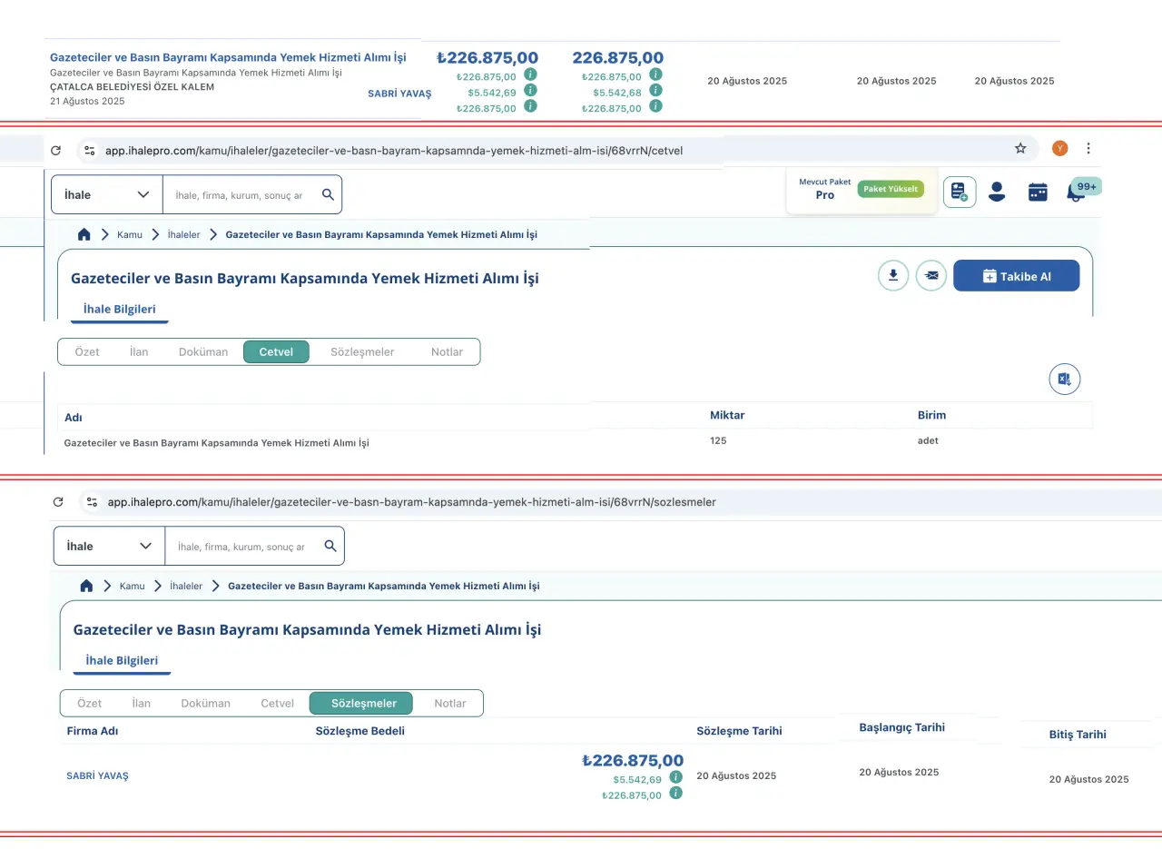 Çatalca Belediyesi’nin, 24 Temmuz Gazeteciler ve Basın Bayramı kapsamında 125 gazeteciye yemek verdiği, ancak bu yemeğin ihalesinin doğrudan temin yoluyla bir ay sonra yapıldığı ortaya çıktı. 21 Ağustos 2025 tarihinde Sabri Yavaş’a ihale edilen yemek organizasyonu için belediye kasasından 226 bin 875 TL ödeme yapıldığı öğrenildi. Bu durum, Çatalcalıların aklında şu soruları gündeme getirdi: Çatalca’da gerçekten 125 gazeteci var mı? Bir ay önce yenilen bir yemeğin ihalesinin bir ay sonra yapılması ihale mevzuatına uygun mu? Sürekli borç ve bütçe yetersizliği gerekçesiyle yerel basına destek vermeyen belediye yönetiminin, kim olduğu ve hangi basın kuruluşunu temsil ettiği bilinmeyen 125 kişiye yemek vermesi ne kadar doğru?