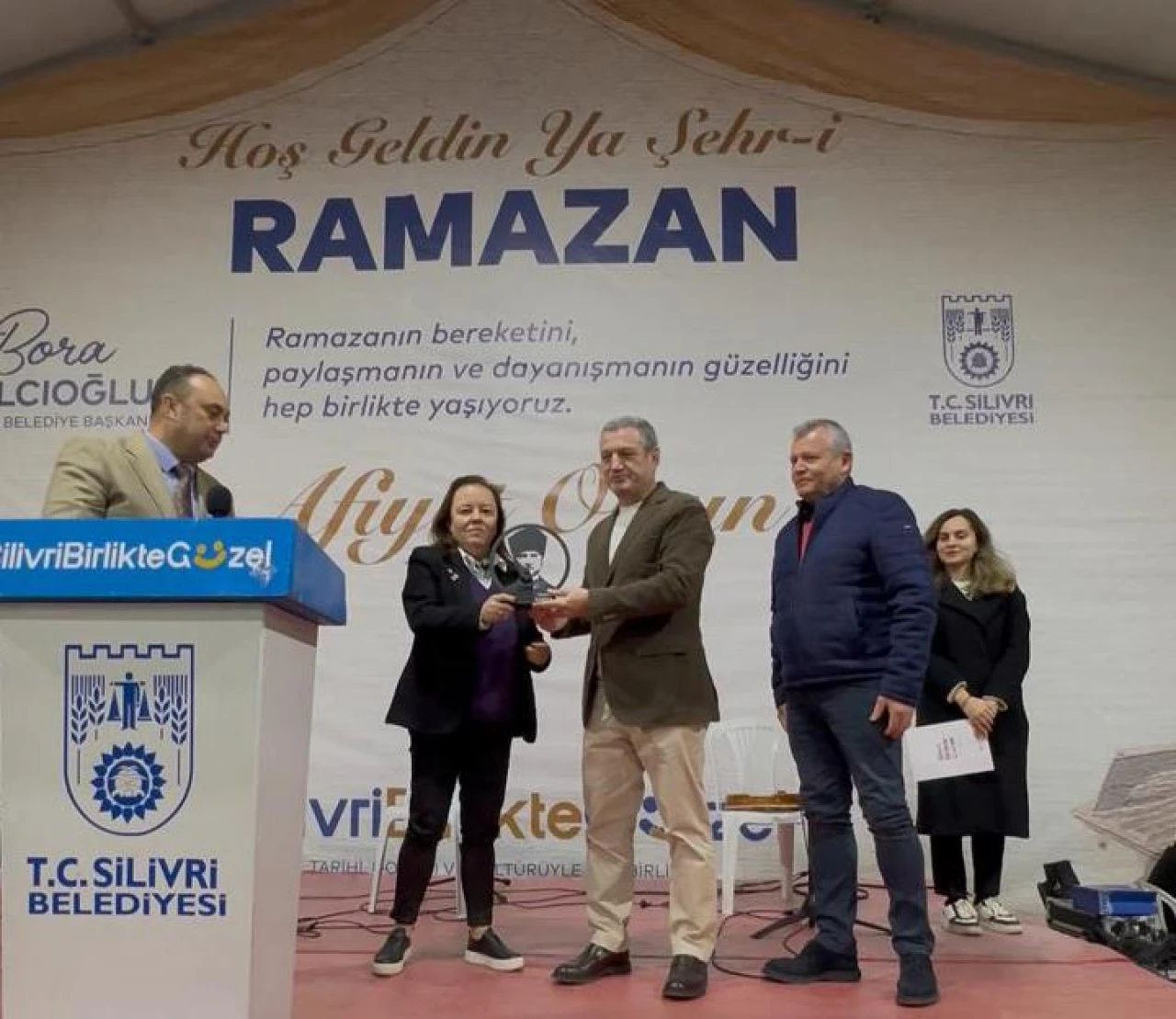 Özimer, Silivri Belediyesi CHP'li Belediye Meclis Üyesi Cihan Demir'e yemeğe katkısından dolayı teşekkür plaketi verdi. Demir'in geçtiğimiz günlerde Bulut'tan önceki ilçe başkanı hakkında "Benim ilçe başkanım hala Ibrahim Kömür'dür" sözleri tepkilere neden olmuştu. İftar programına başkanların gelmemesi ve Demir'e teşekkür plaketi verilmesi kafalarda soru işareti bıraktı.