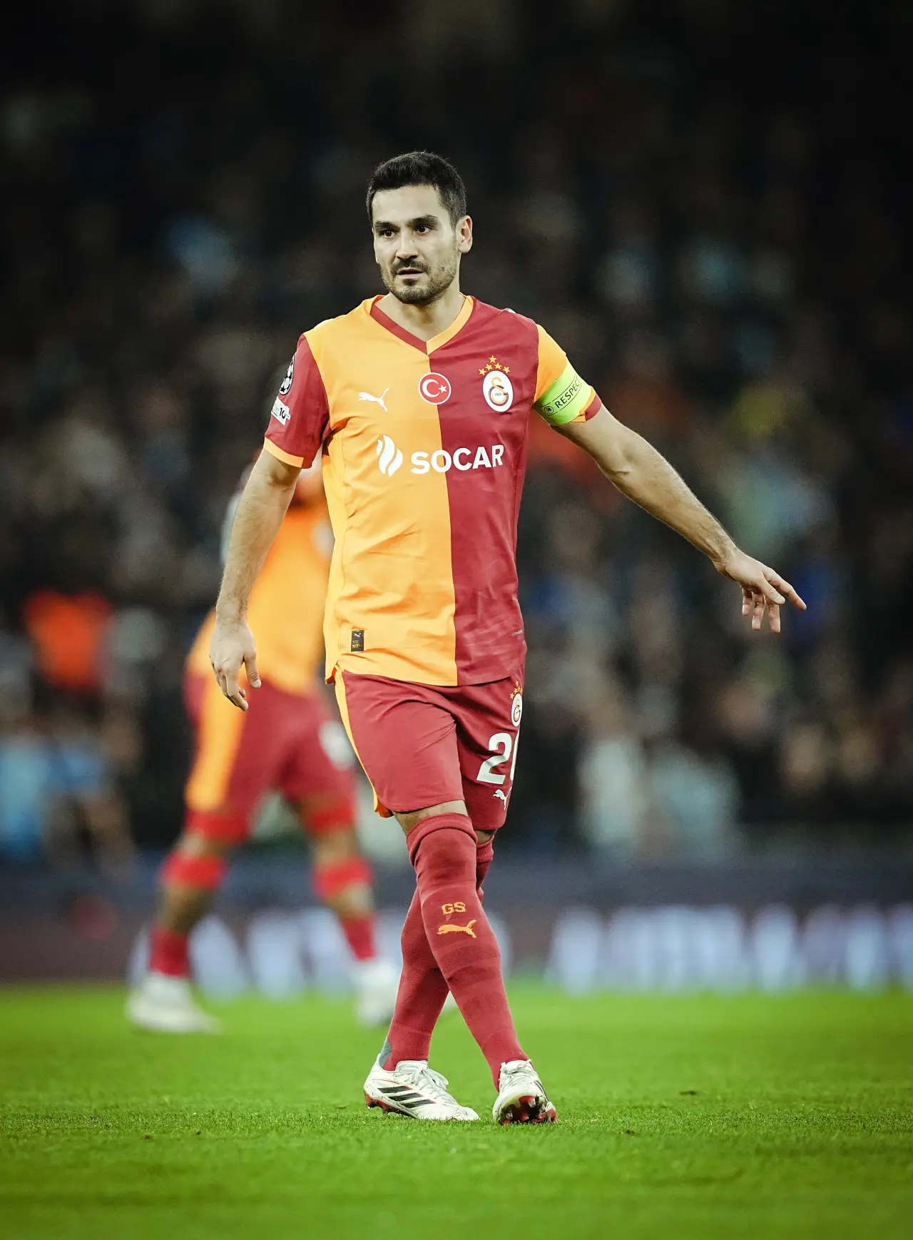 Galatasaray'da tecrübeli orta saha oyuncusu İlkay Gündoğan, eski takımı Manchester City karşısında kaptanlık pazubendini taktı. Manchester City formasını terlettiği 8 sezonda 1 UEFA Şampiyonlar Ligi, 5 Premier Lig, ikişer İngiltere Kupası ve İngiltere Süper Kupası, 4 de İngiltere Lig Kupası şampiyonluğu yaşayan tecrübeli futbolcu, mücadeleye kaptan olarak çıktı. İlkay, mavi formayla 358 resmi maçta 65 gol atma başarısı göstermişti.