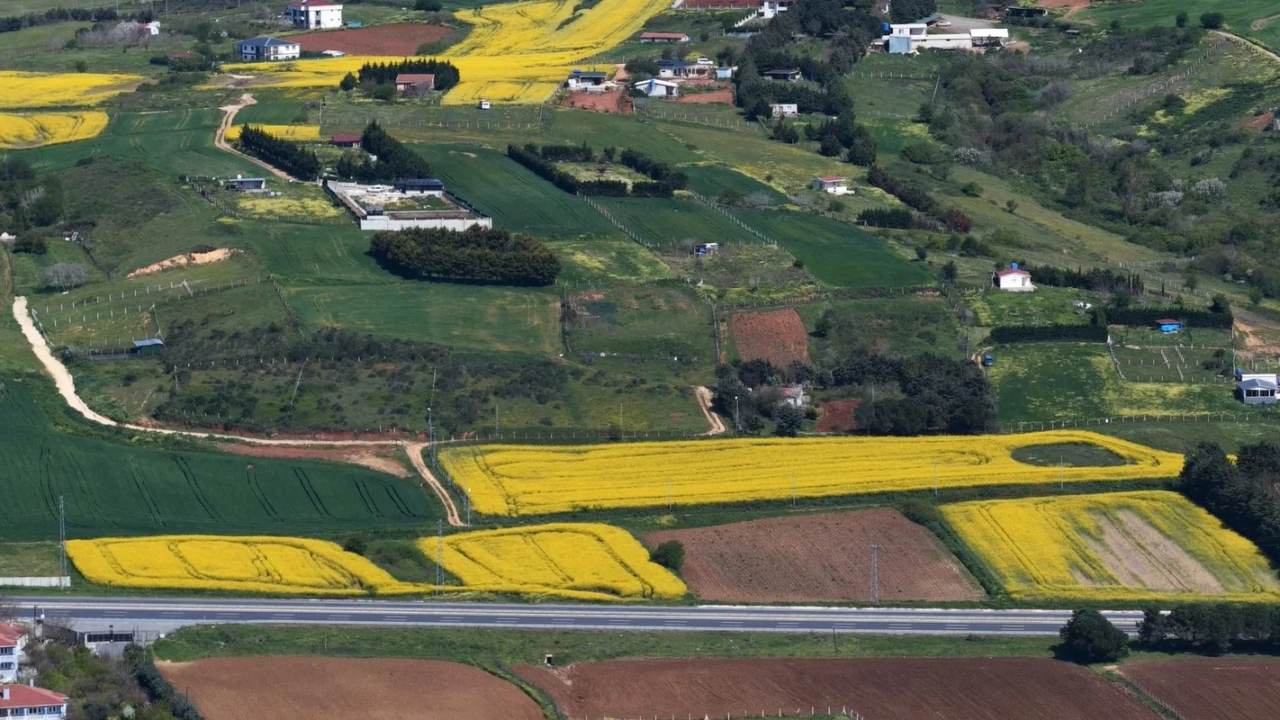 İstanbul’da ilkbaharın gelmesiyle birlikte ‘sarı altın çiçek’ olarak bilinen kanola bitkisi çiçek açtı. Sonbaharda ekilen, aralık ayında yapraklanan kanola, havaların ısınmasıyla sarı çiçeklerini açarak tarlaları renklendirdi. Sarı ve yeşil tonların iç içe geçtiği manzara, Çatalca’da dron ile havadan görüntülendi. Ayçiçeğine alternatif olarak ekilen ve bitkisel yağ üretiminde kullanılan kanolada, son bir aydır etkili olan yağışlar nedeniyle verimin yüksek olması bekleniyor.