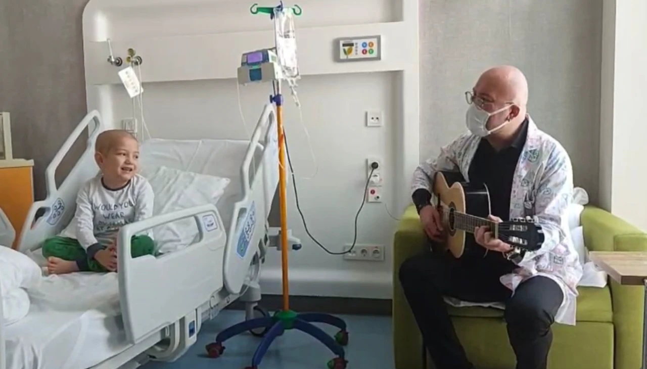 Mehmet Utku Türe de bir süredir hastanede annesiyle kaldığını anlatarak, "Hastanede oyun oynuyorum, çizgi film izliyorum. Burada en çok yürüyüş yapmayı seviyorum ama bisiklet de sürüyorum. Gün içinde kardeşlerimi arıyorum. Öğretmenlerim yanıma geliyor. En sevdiğim öğretmen Melike öğretmen. Arkadaşlarım da var burada. Onlarla bazen saklambaç oynuyoruz. Hastanede olduğum için en çok kardeşlerimi özlüyorum. Bir an önce hastaneden çıkıp onlara kavuşmak istiyorum. Dışarı çıktığımda babamın bana oyuncak almasını istiyorum. Babamı da özledim. Şarkı söylemeyi seviyorum. Büyüyünce iyileştikten sonra doktor olmak istiyorum. Üstün Hoca gibi bir doktor olmak istiyorum" ifadelerini kullandı.